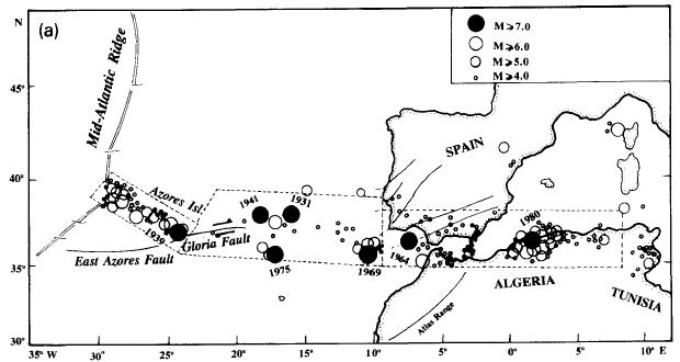 (3) Kiratzi and Papazachos, 1995, Active crustal deformation from the Azores triple junction to the Middle East: Tectonophysics Volume 243, Issues 1-2, 15, Pages 1-24 10.1016/0040-1951(94)00188-F