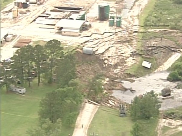 A company that sits near the edge of a massive sinkhole in Southeast Texas has been accused of violating permits for disposal of saltwater, which some geologists suggest may have caused the crater.