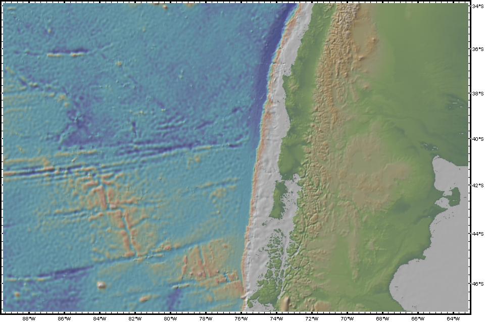 So, for this week’s Sea-Floor Sunday, I quickly created this simple image using GeoMapApp. I thought a regional map of topography and bathymetry might be a nice complement to all the other images for Chaitén.
