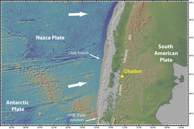As everyone knows now, an Andean volcano in Chile, Chaitén, erupted this past week. We’ve all seen those spectacular images and The Volcanism Blog continues to deliver great update posts.