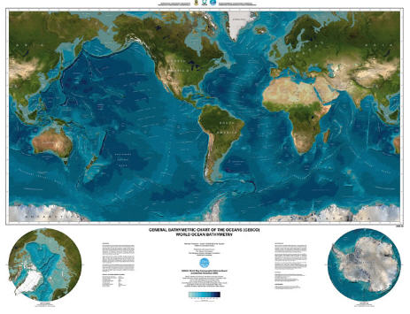 There are several world maps that show bathymetry out on the internets available for download. Last week I came across one I had not seen yet.