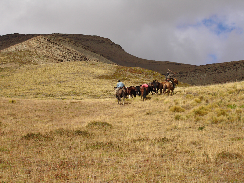 The gauchos would drop us and all our gear off and then head back to civilization (i.e., a ranch in the middle of nowhere). For this particular excursion, we were staying for 11 nights. Basically, we set up the date for them to come back and get us … and that’s how it worked (we had a sat phone in case we needed to get out earlier than planned). In the photo above, that’s Chechin and Luis riding off with all the horses … leaving the four of us … in the middle of nowhere … for 12 days.