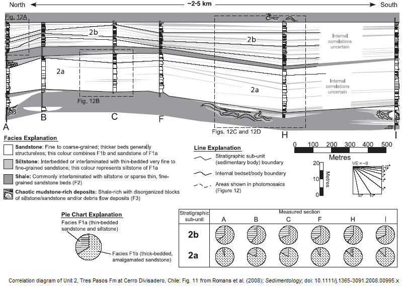 Correlation diagram of Unit 2, Tres Pasos Fm, Cerro Divisadero, southern Chile (© 2009 International Assoc. of Sedimentologists; figure drawn by me)