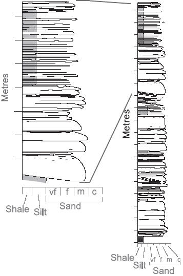 Example of measured section from Tres Pasos Formation, southern Chile (Part of Fig. 5; © 2009 International Assoc. of Sedimentologists; figure drawn by me)