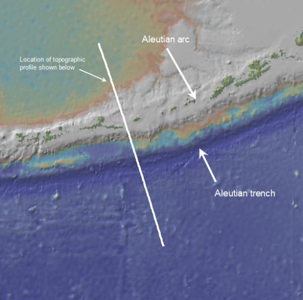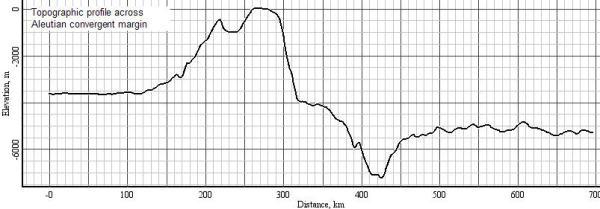 Fig. 4b: Topographic profile across Aleutian trench and islands (created with GeoMapApp)