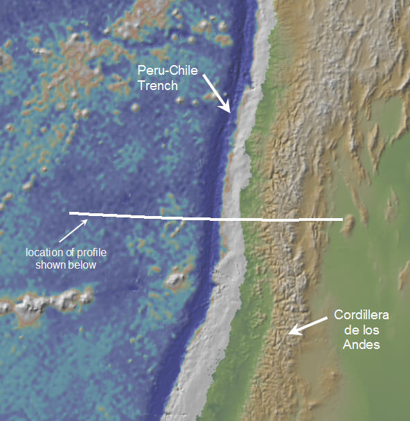 Next is a plate boundary that does have a significant trench — the Peru-Chile trench of the Nazca/South American margin.