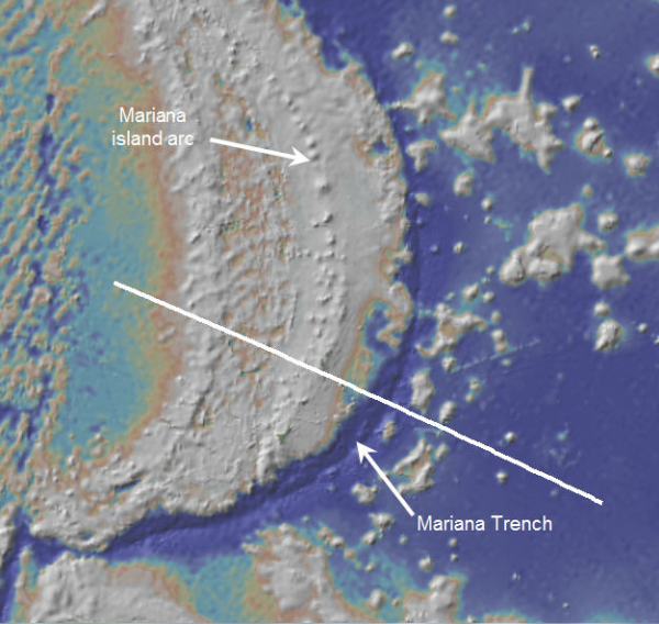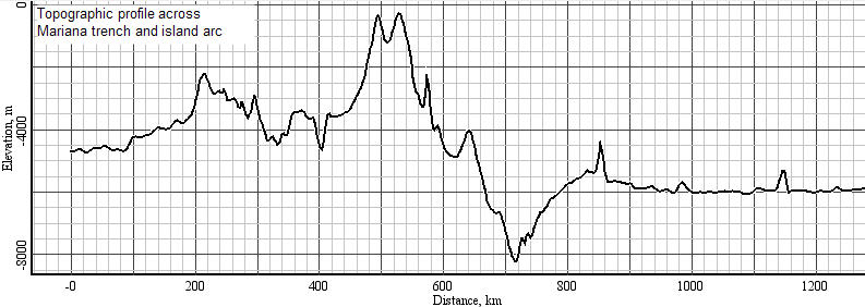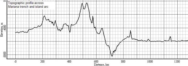 Fig. 5b: Topographic profile across Mariana trench and arc (created with GeoMapApp)