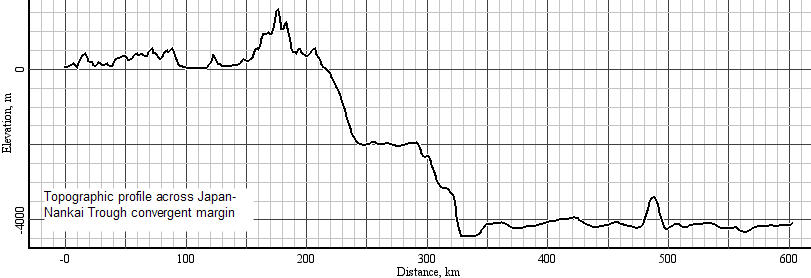 Finally, the last one in this series of maps and profiles is the Nankai Trough region offshore southeastern Japan.