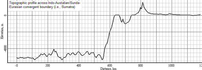 Fig. 3b: Topographic profile across Sunda trench and Sumatra (created with GeoMapApp)
