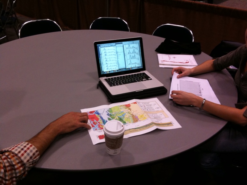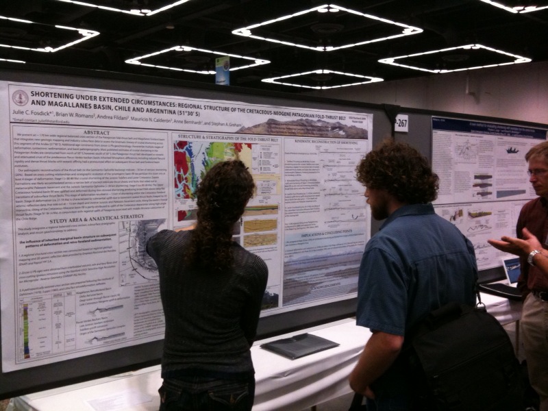 I spent most of Wednesday morning at a poster session that was the companion session for the one my talk was in. Although the active poster time each day was later in the afternoon there were a lot of folks around in the morning. The poster my colleague presented, which went into a lot more detail about the structural history of the foreland basin I talked about on Tuesday, had a nice little crowd around it for about an hour. Many of the same people who attended and presented in the oral session were around checking out the posters. I really like the combination of an oral session followed by a poster session — provides a chance for follow-up conversations.