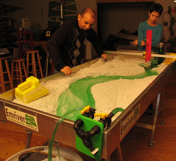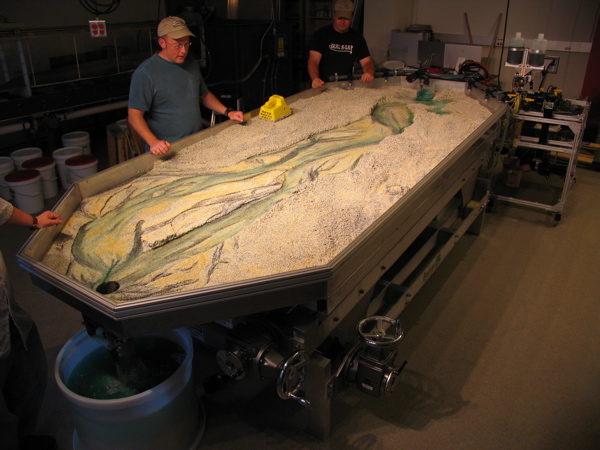 Little River Research & Design is a small “semi-profit” organization I founded in 1991. For 16 years it was mostly just me doing consulting in applied river geomorphology. In 2007, I hired three people so we could shift more from consulting to river conservation science and education. We produce high quality educational video, some compiled on this DVD, and also movable bed river models (MBMs), including the big (4 m x 1.5 m) Emriver Em4 and the smaller, portable Em2. There are now fifty Em2s in use, about half of them are at university geoscience departments. We’re now working with museums, state and federal agencies, and other universities to develop MBM hardware (including open source designs) and curriculum. We’ve developed a unique color coded by size plastic modeling media that I think will revolutionize MBM use for research and teaching; short video here (.mov file) and are also working on cool new technologies like close range photogrammetry for use with MBMs.