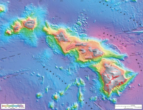This installment of Sea-Floor Sunday highlights a place I’ve never been. But, that’s about to change — my wife and I are headed to Hawai’i next week for an actual vacation. I can’t even remember when I’ve had one of those! The images below are from this beautiful bathymetric map from the U.S. Geological Survey, which can be found here (or by clicking on images below).