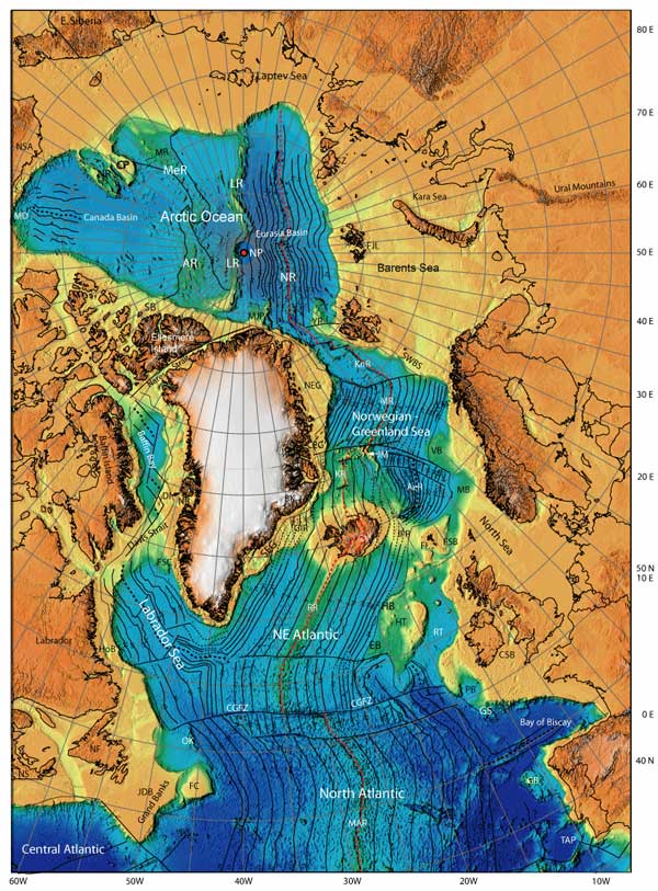 North Atlantic and Arctic Oceans and surrounding regions (credit: http://www.mantleplumes.org/Iceland2.html)