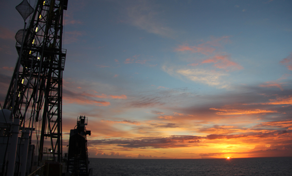 Nearly all of the geological field work I’ve done up to now has been on outcrops, rocks exposed at the surface. I’ve also done quite a bit of work on cores taken from the subsurface, which are stored in a repository and then laid out for geologists to view, describe, and sample. Working on the JOIDES Resolution is like being in the field and the core lab at the same time. Every hour or so during coring operations there’s an announcement that goes out across the ship saying ‘Core on deck’ or ‘Core on the floor.’ What I love about this is that it’s all about the core. Getting the material that holds clues to events and conditions of an ancient Earth is the primary objective.